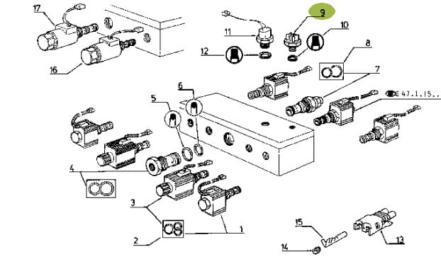 Czujnik ciśnienia skrzyni Renault - montowany w różnych miejscach, w zależności od modelu ciągnika (np. w Celtis montowany w płycie rozdzielacza)